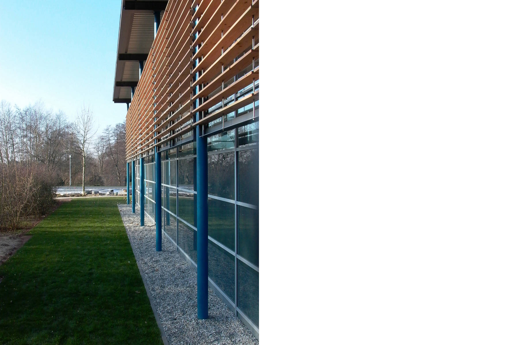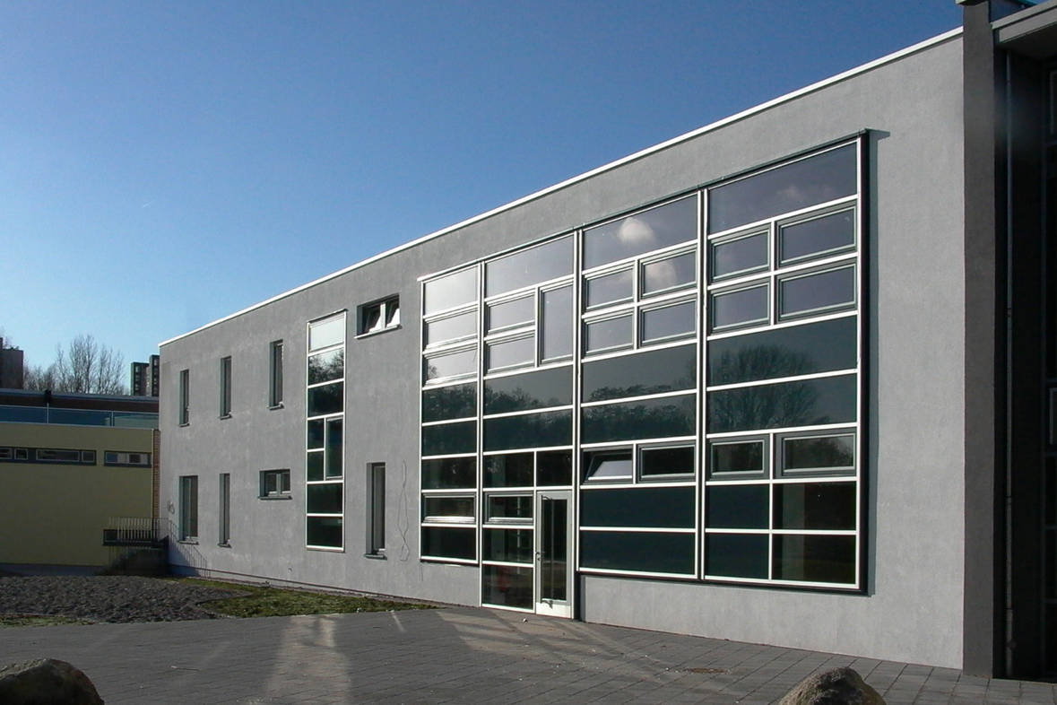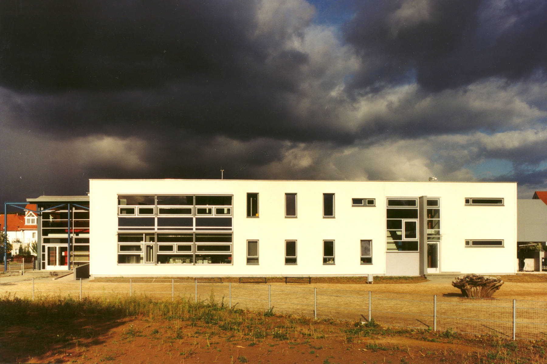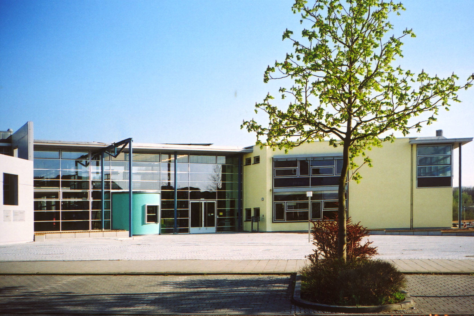 In Darmstadt-Kranichstein wurde eine integrierte Gesamtschule nach gewonnenem Wettbewerb geplant und abschnittsweise realisiert. Es handelt sich um eine 3-zügige Ganztags-Mittelstufenschule (5. – 10. Schuljahr) mit Mehrzweckräumen, Sporthalle und angeschlossenem Bürgerzentrum.