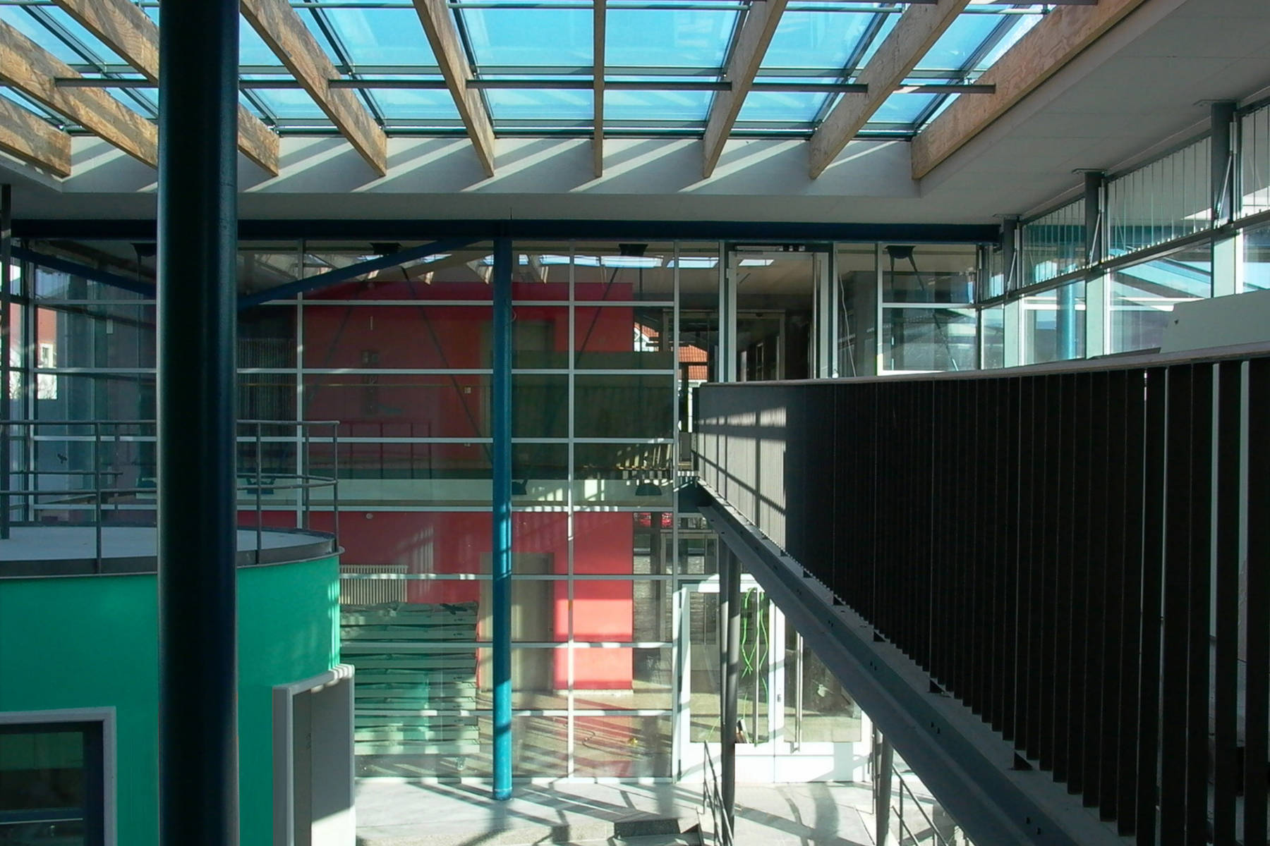 Im zweiten Bauabschnitt folgte eine dritter Klassentrakt für 6 Klassen, sowie die Fachklassenräume für Biologie, Physik, Chemie, Werken und EDV. Die Pausenhalle wurde dementsprechend verändert und ein weiterer grüner Hof ergänzt. Dem ebenerdigen Biologiesaal wurde ein Gewächshaus mit direktem Zugang vorgelagert und den Werkstätten ein geschützter Werkhof zugeordnet.