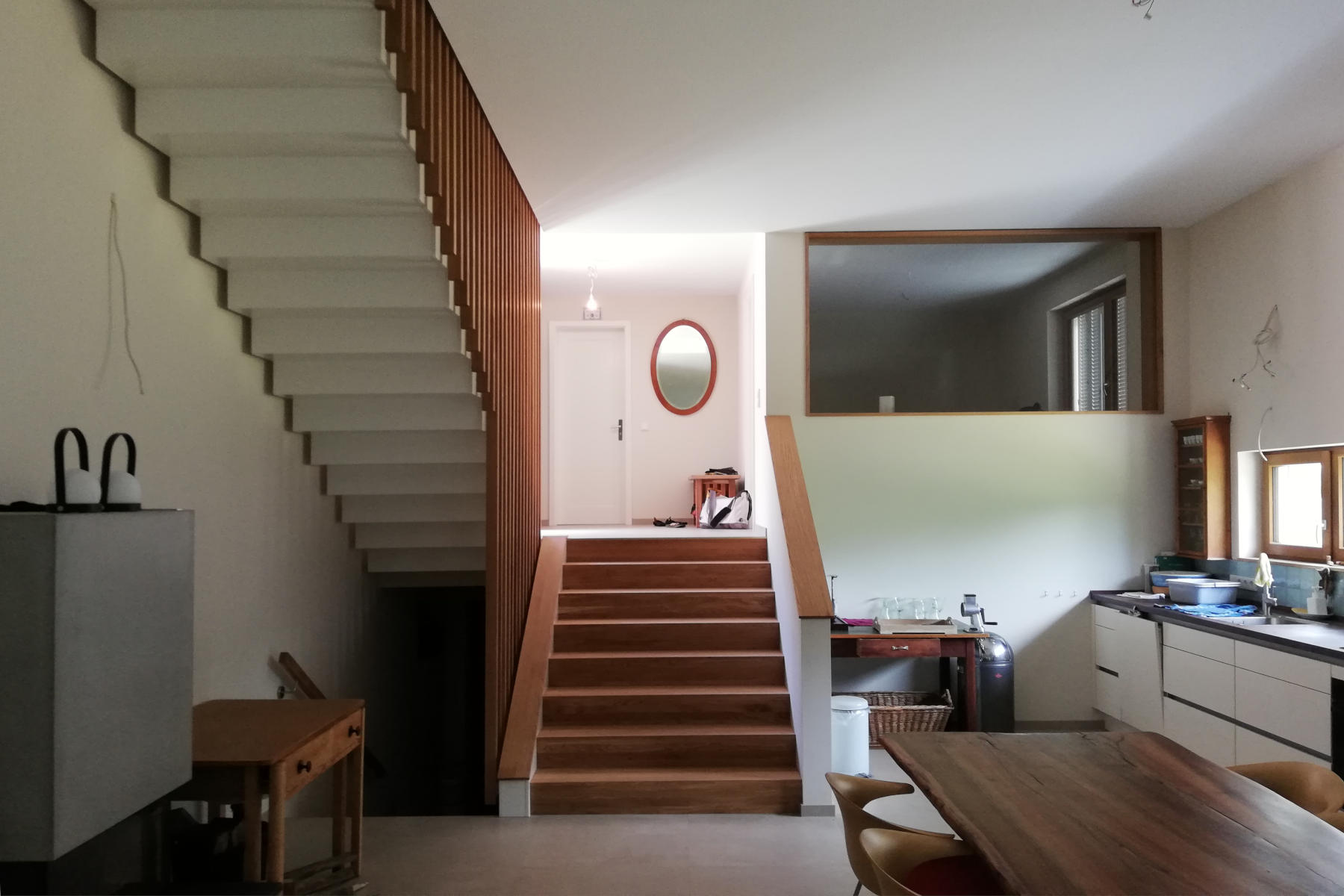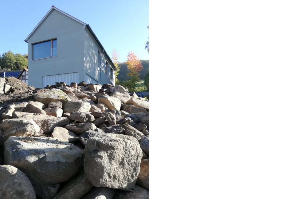 Ein erworbenes Wohnhaus aus den 60er Jahren sollte saniert und umgebaut werden. Nach der Umplanung zeigte sich bei der Entkernung des Gebäudes wie stark die tragende Struktur des Bauwerks beschädigt war, so dass ein Abriss und Neubau an gleicher Stelle erforderlich wurde.